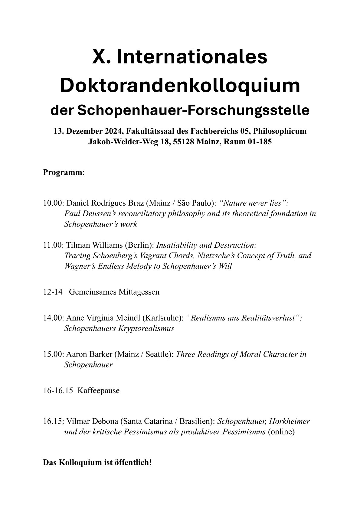 participation in the 11th Graduate Conference on Schopenhauer’s philosophy is now open.
